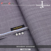 *Junaid Jamshed**Silver Finish* *SULB KHADAR*🥳🥳🎉🎉Super fine khader & desgine Cutting....4.5 meterSilver finishingSuper smooth fine quality with a luxurious lookFancy button...